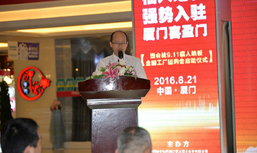 首先,由中林pg电子销售总监石开洪先生受中林pg电子董事长毕见勇先生的委托致辞。石总体现:厦门喜盈门建材商场一直是高端家装商场的标杆和旗帜,pg电子地板作为福建地板的知名品牌,始终坚持"做有良心的地板,做消费者口碑的品牌"理念,此次pg电子地板强势入驻厦门喜盈门可谓是知名品牌与优秀卖场的强强联手,相信pg电子地板肯定会为厦门的新老客户提供国际品质的产品和最优质的效劳。其次,石总关于此次"会战9.11"运动抱有很大信心,石总体现:此次团购会一定能够获得更多、更大规模的宽大消费者的亲睐,让全国的消费者获得更多的实惠,pg电子地板会战9.11也必将是一次很是乐成的团购会。