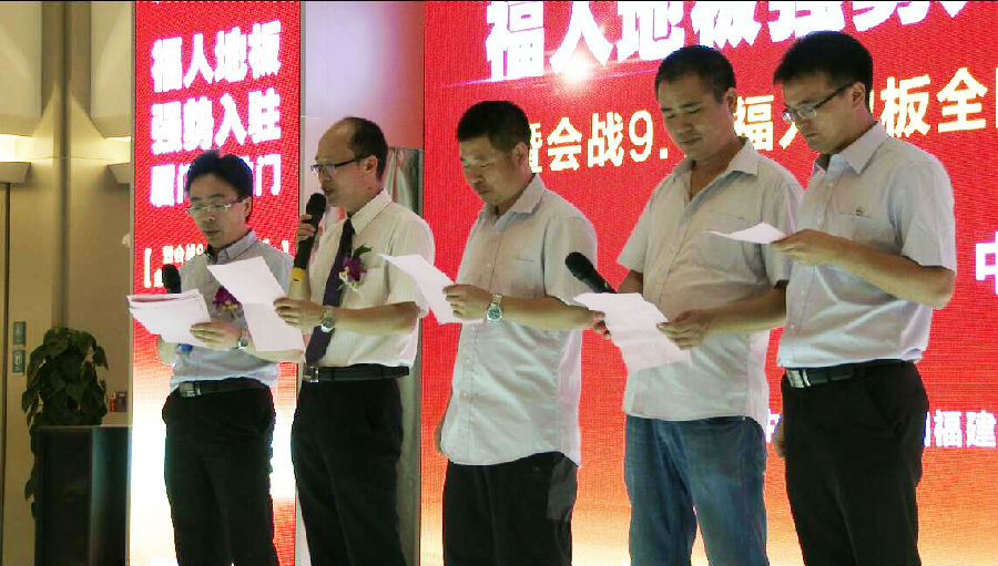 最后,由厦门喜盈门领导肖总、福建省产品质量检验研究所颜副所长、中林pg电子销售总监石总、经销商代表开启"会战9.11"启动球,预示着pg电子地板"会战9.11"全国千店联动正式拉开帷幕。